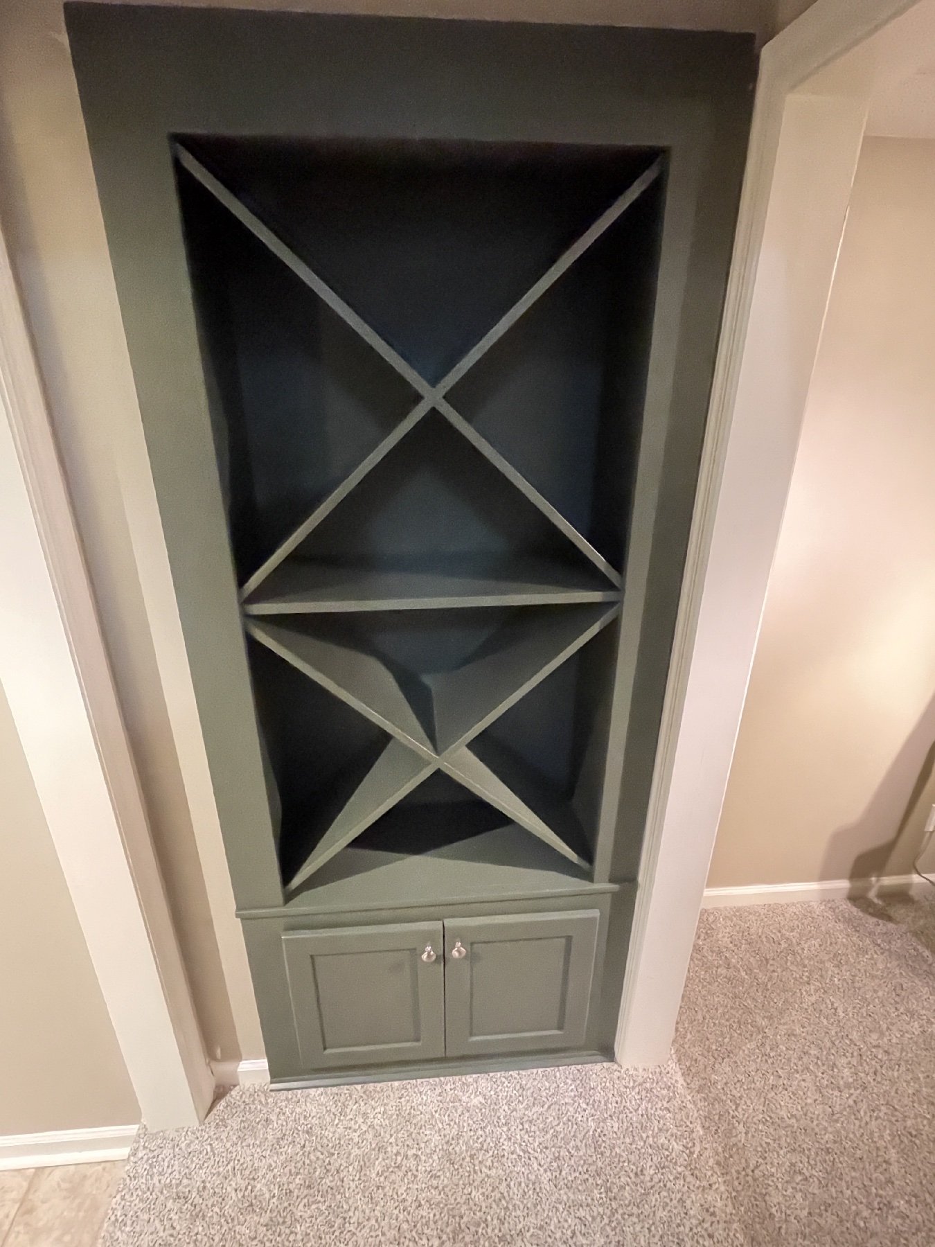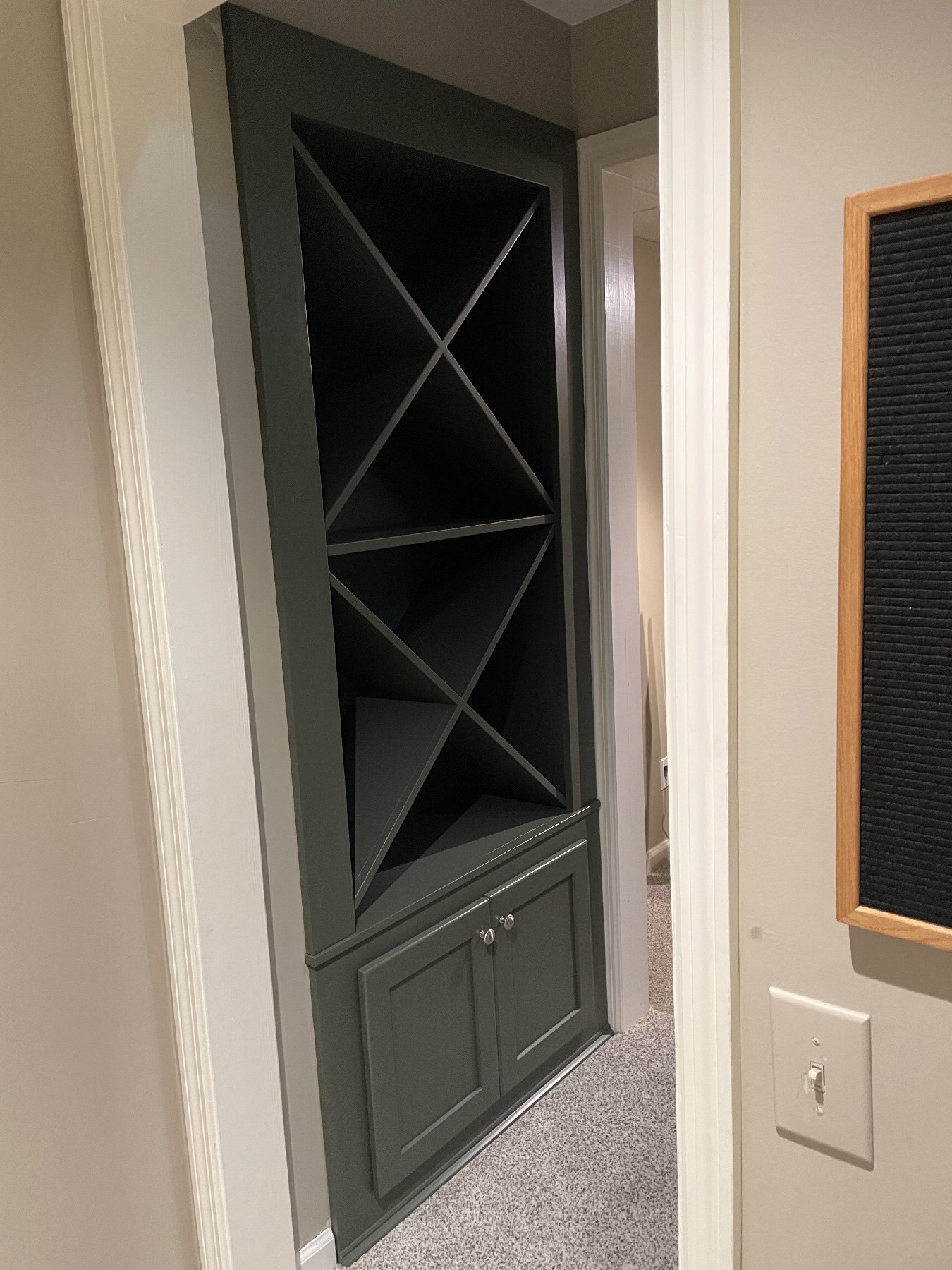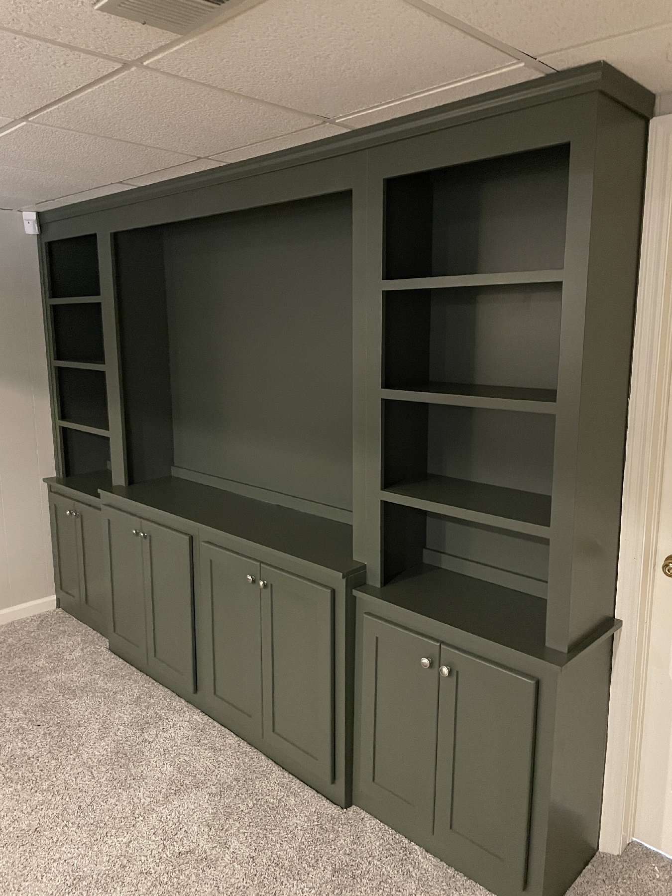 Replaced a very outdate entertainment center with a new built-in with plenty of storage and display space. Also replaced an old gun cabinet with a modern wine storage rack and cabinetry.
