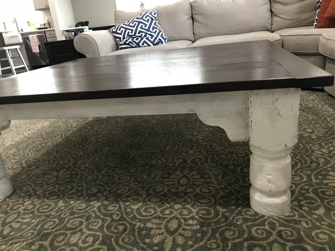 Large Sofa Table with hand-turned distressed legs and thick plank stained white oak top. Share this: Click to share on Facebook (Opens in new window) Facebook Click to email a link to a friend (Opens in new window) Email Click to share on Pinterest (Opens in new window) Pinterest More Click to share on LinkedIn (Opens in new window) LinkedIn Click to share on X (Opens in new window) X Related