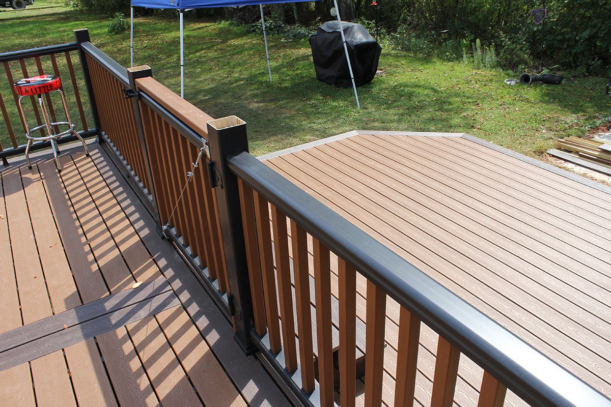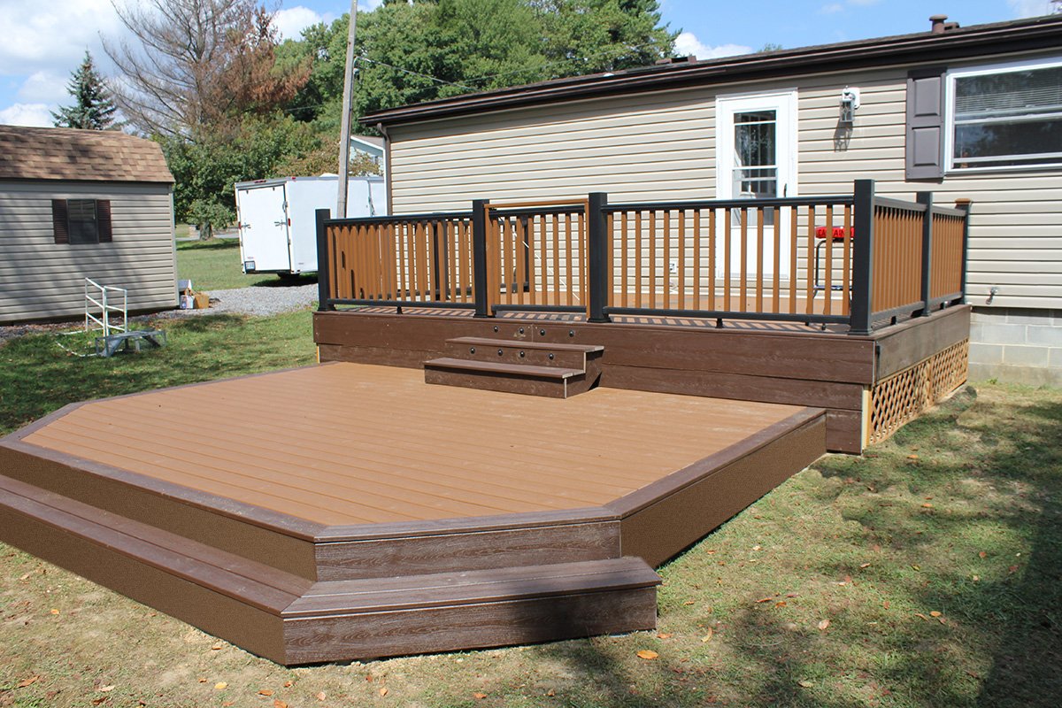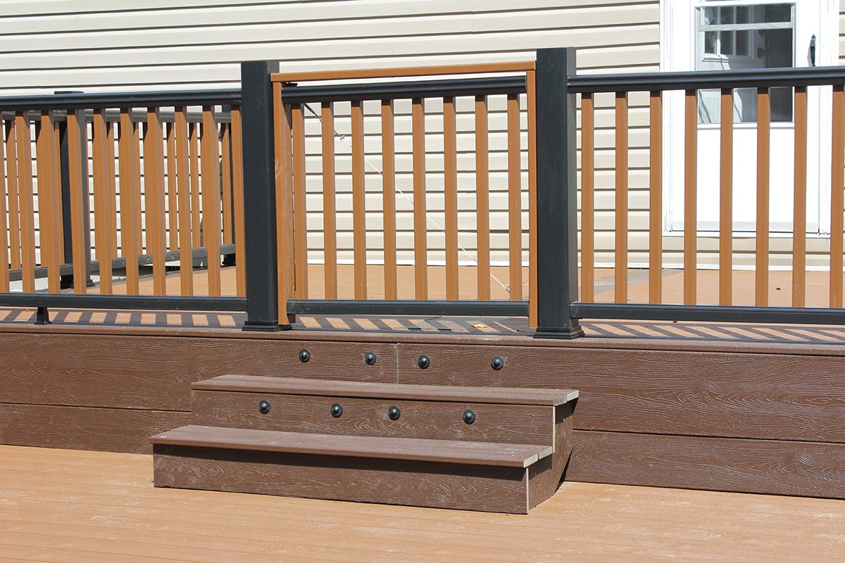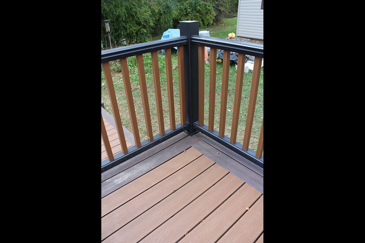 Removed the old pressure treated deck and replaced with a 2-level Trex composite two-tone deck with composite rails and stairs for many years free of maintenance. Front porch was needing a complete redo as well, replaced with Trex composite deck, rails and stairs.