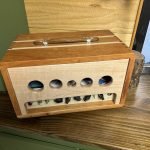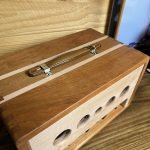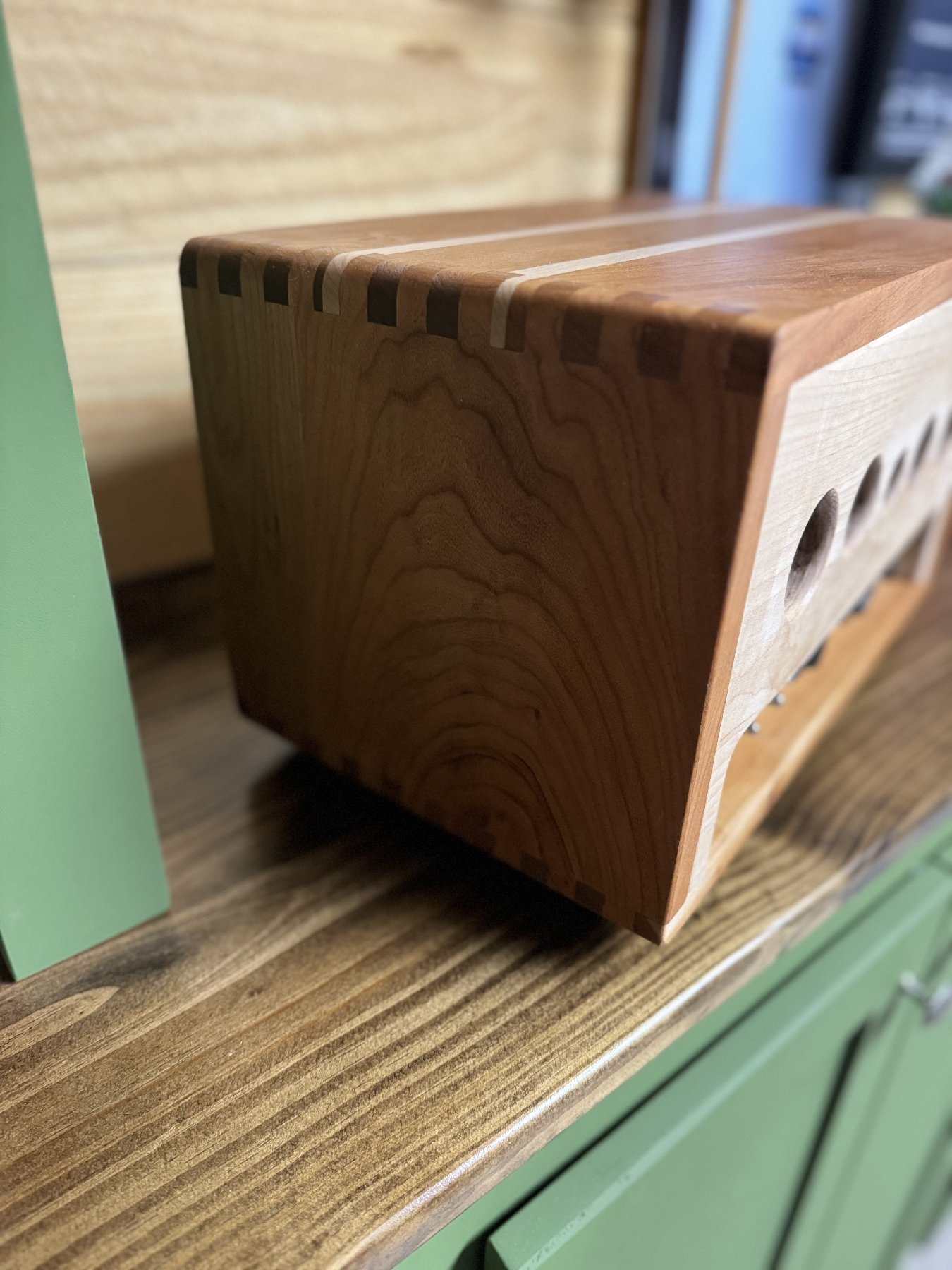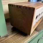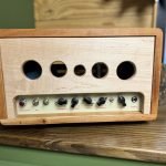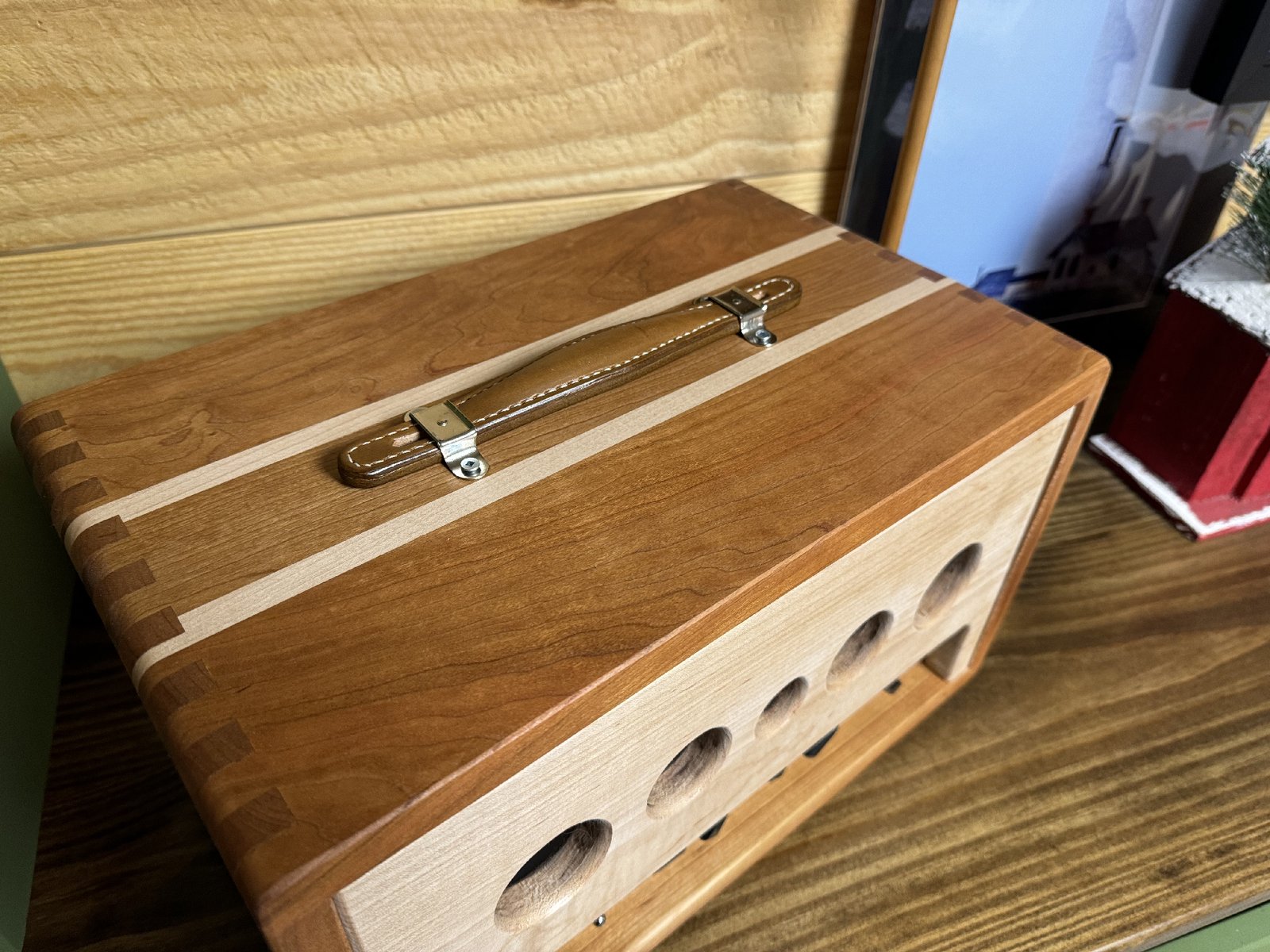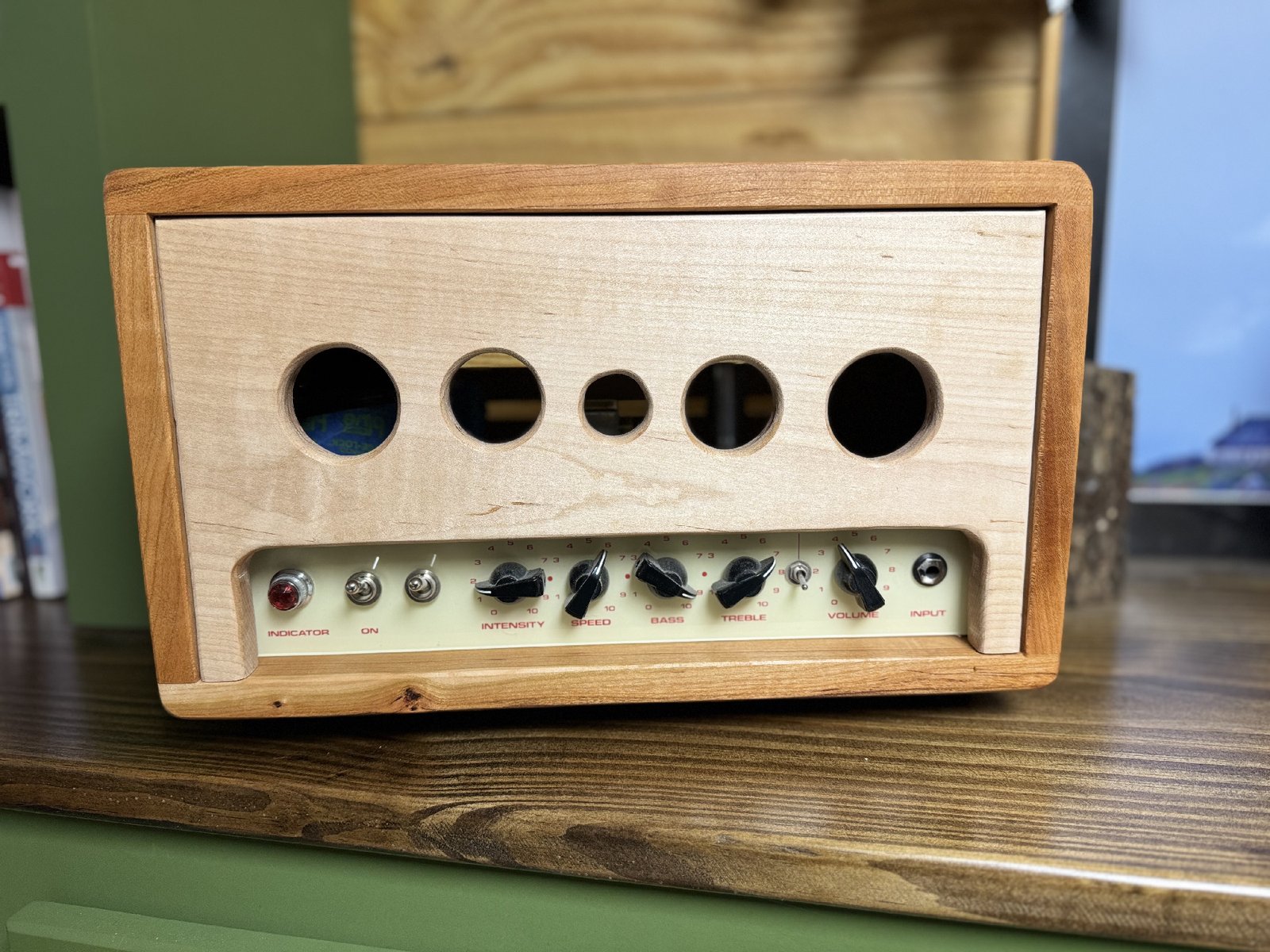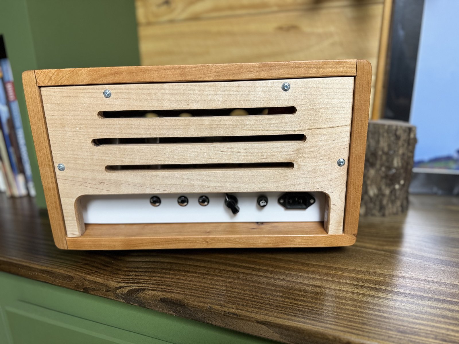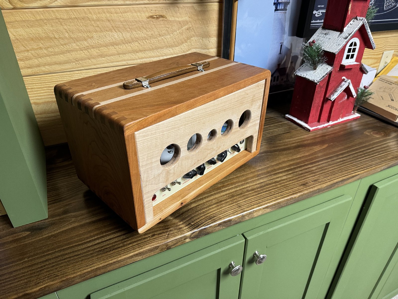 Custom size amp box made from Cherry & Maple with box cut joinery and CNC cutouts for that “Mid-Century Modern” feel.