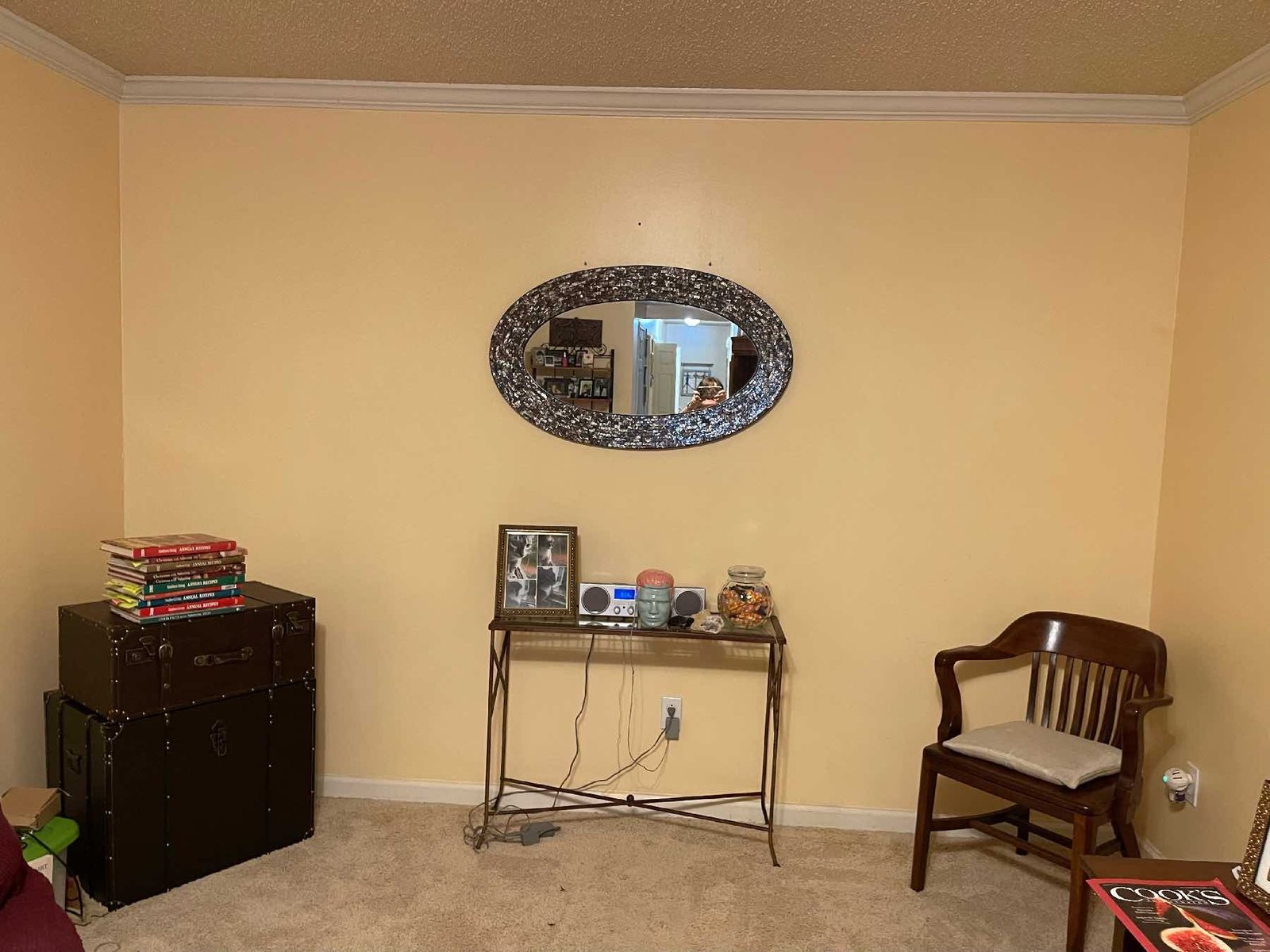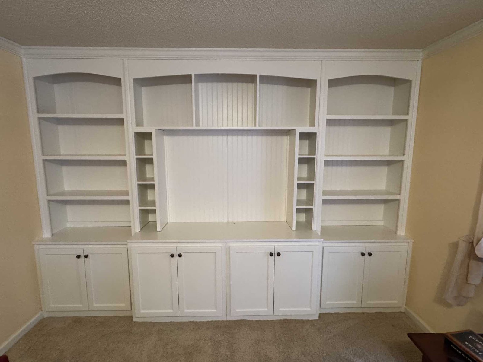 Smaller shelves were added for homeowners family photos and ready for Christmas ornaments. Grommets installed in all corners for Christmas lighting in the future.