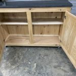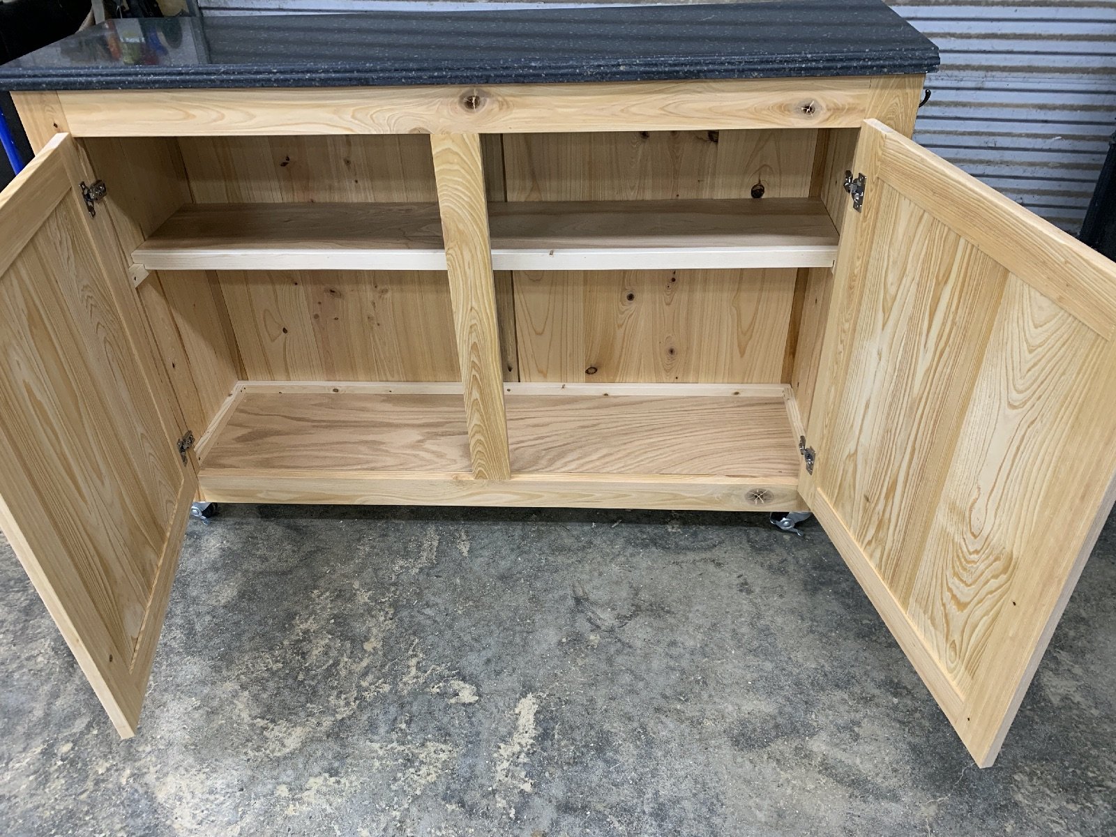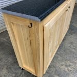 Custom grill cart on casters – all from Cypress hardwood with an exterior poly topcoat. Customer supplied marble top to finish it off.
