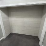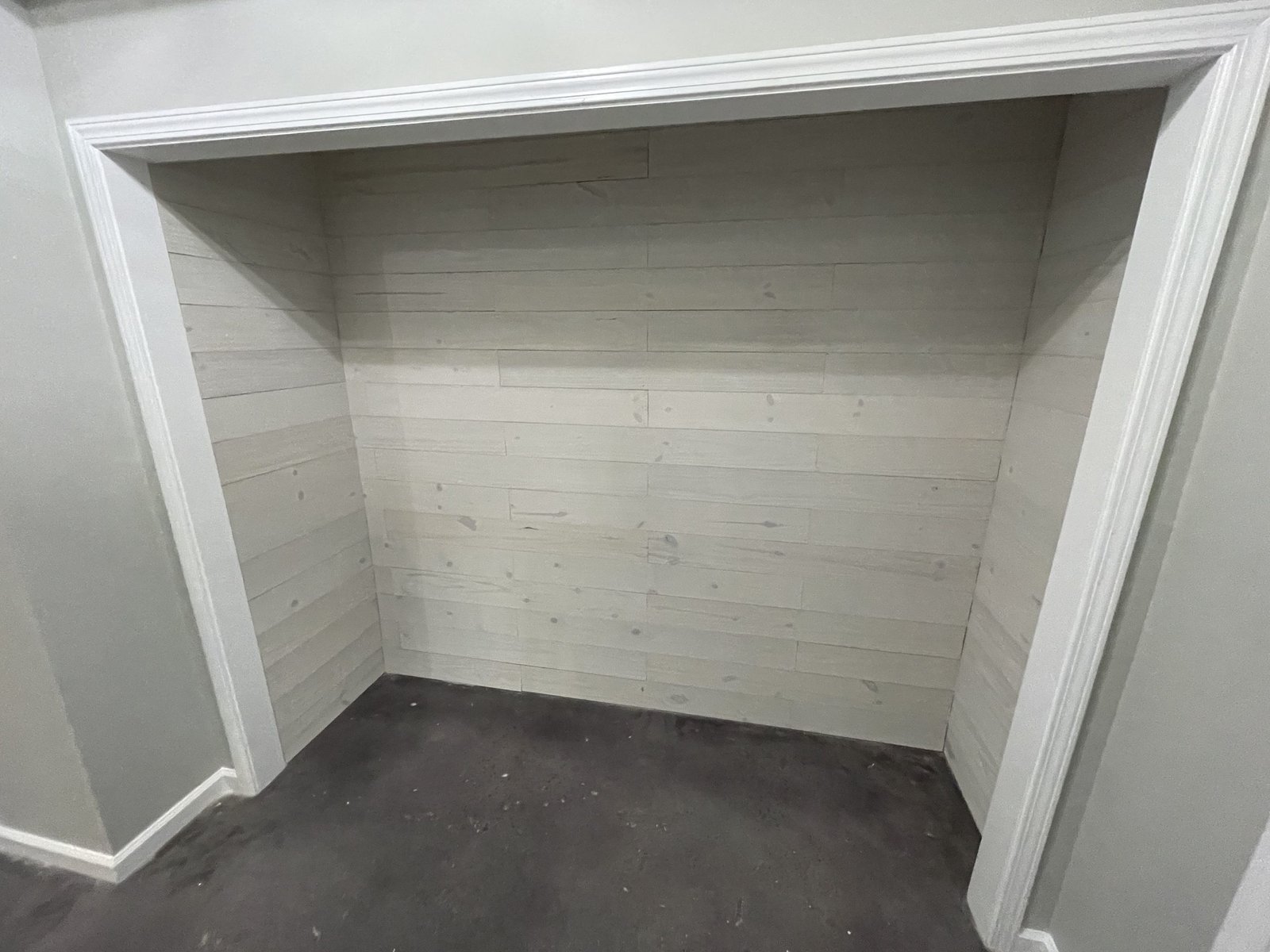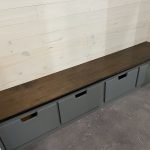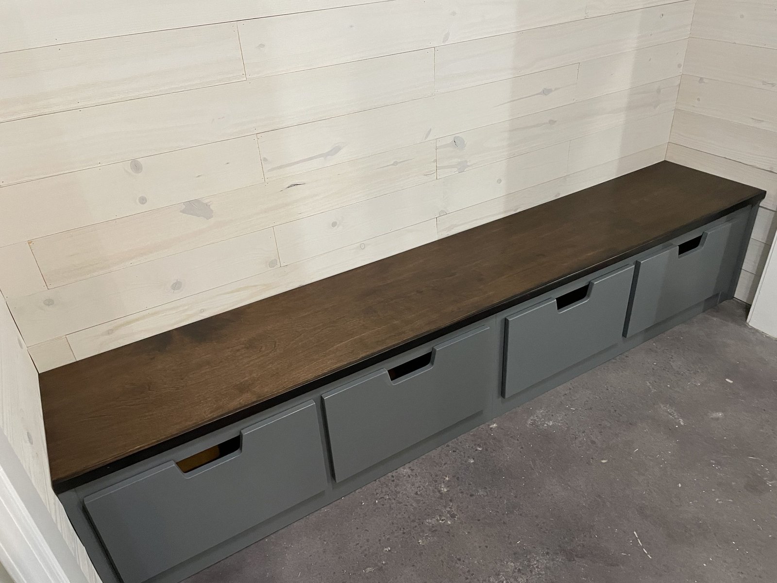 Newly remodeled basement needed a mudroom bench – empty long closet in the hall near the entry door – sounds like a perfect spot.