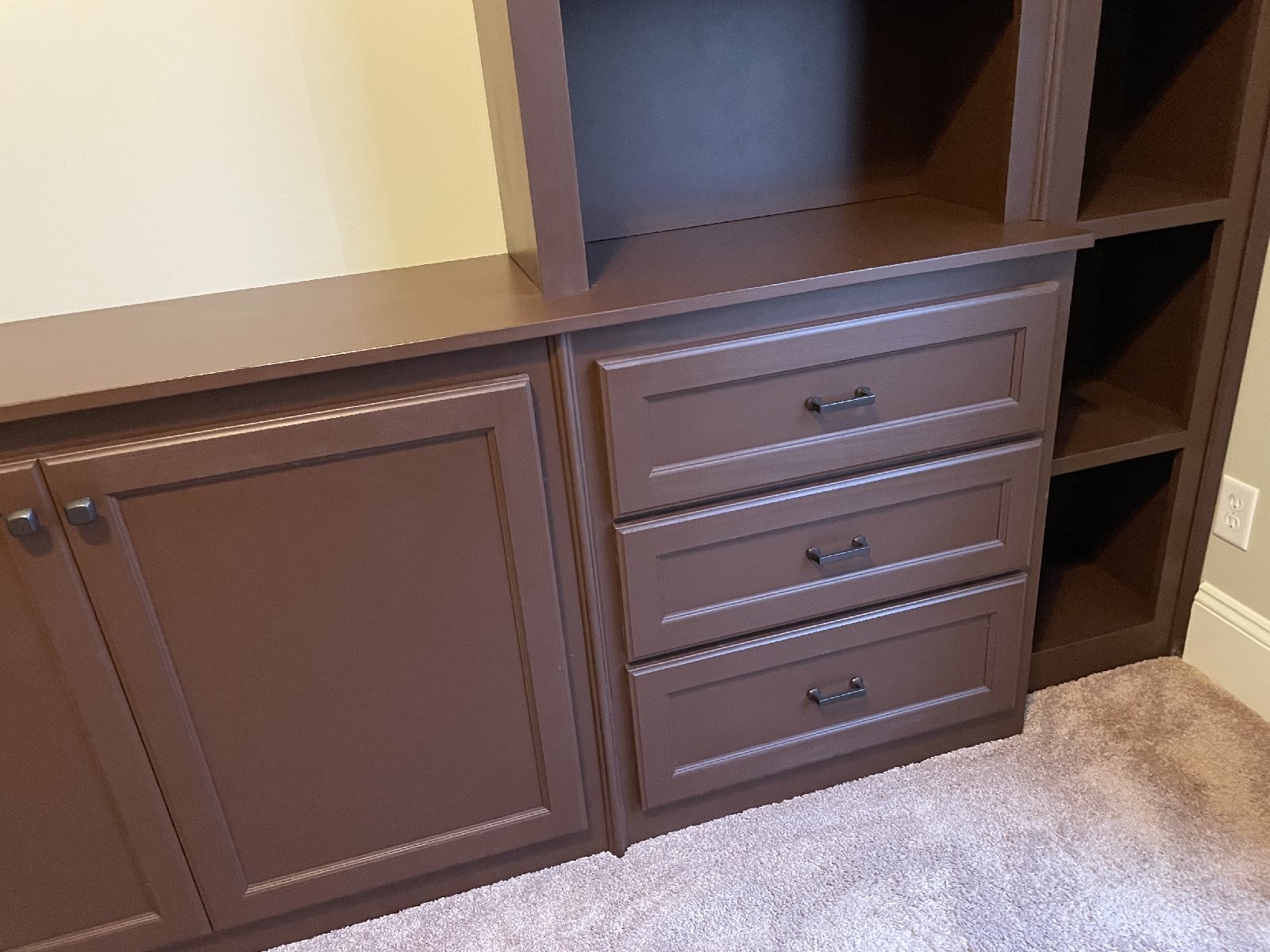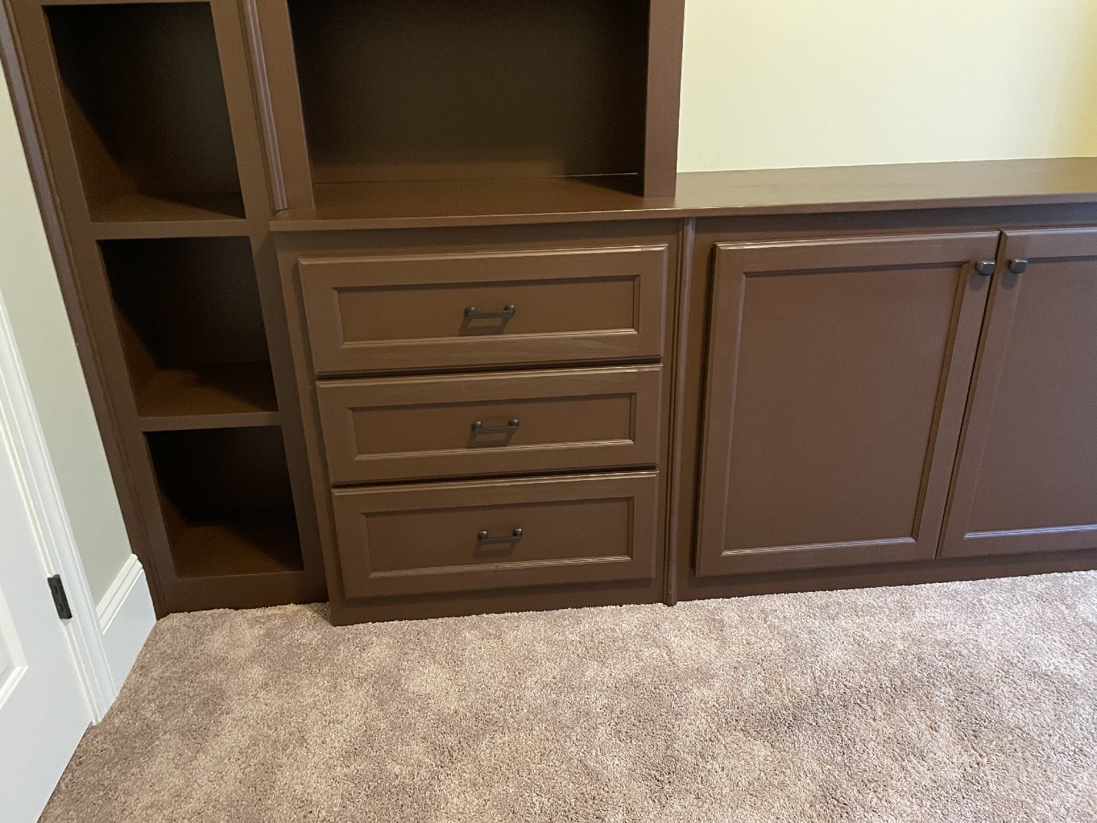 A new built-in project added to another home office… seems to be the need these days! Adding a lot of storage and shelving, cabinets and drawers.