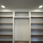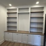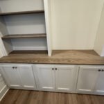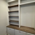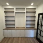 New built-ins , shelving and storage cabinets added to a home office. Tons of storage, cabinets and a bridge.