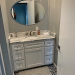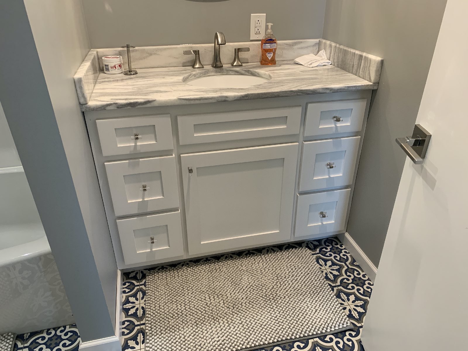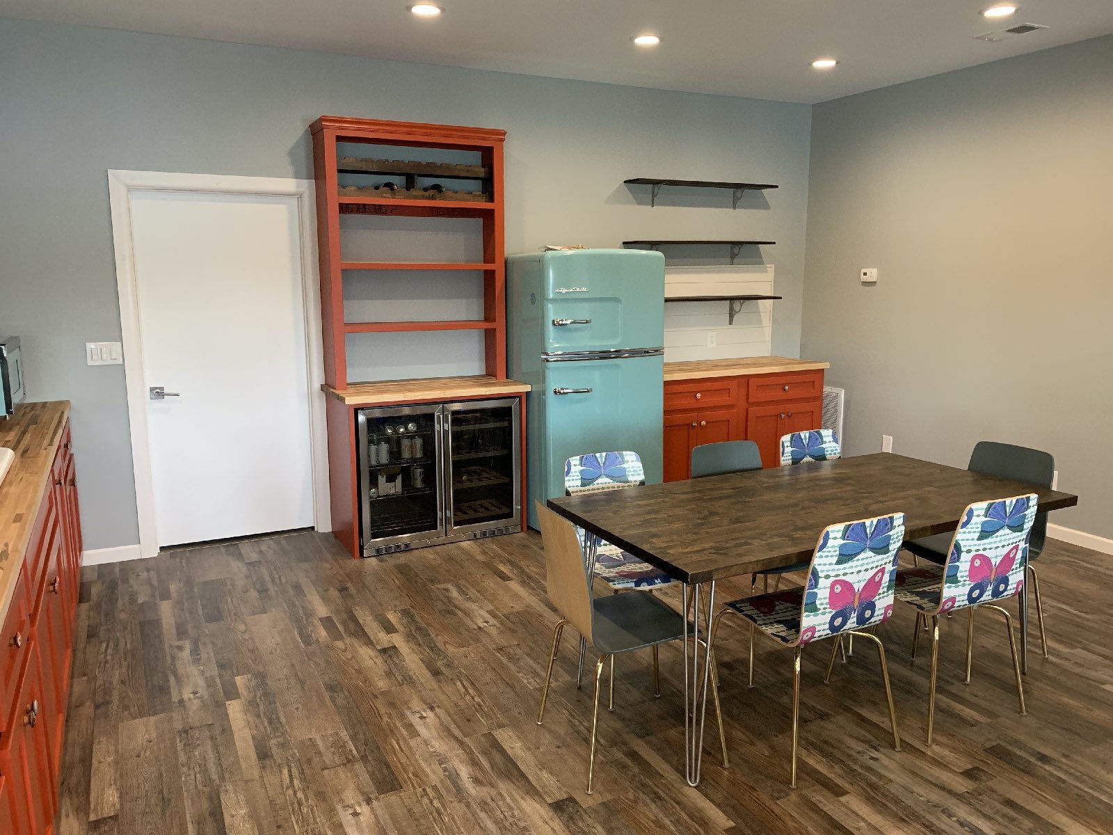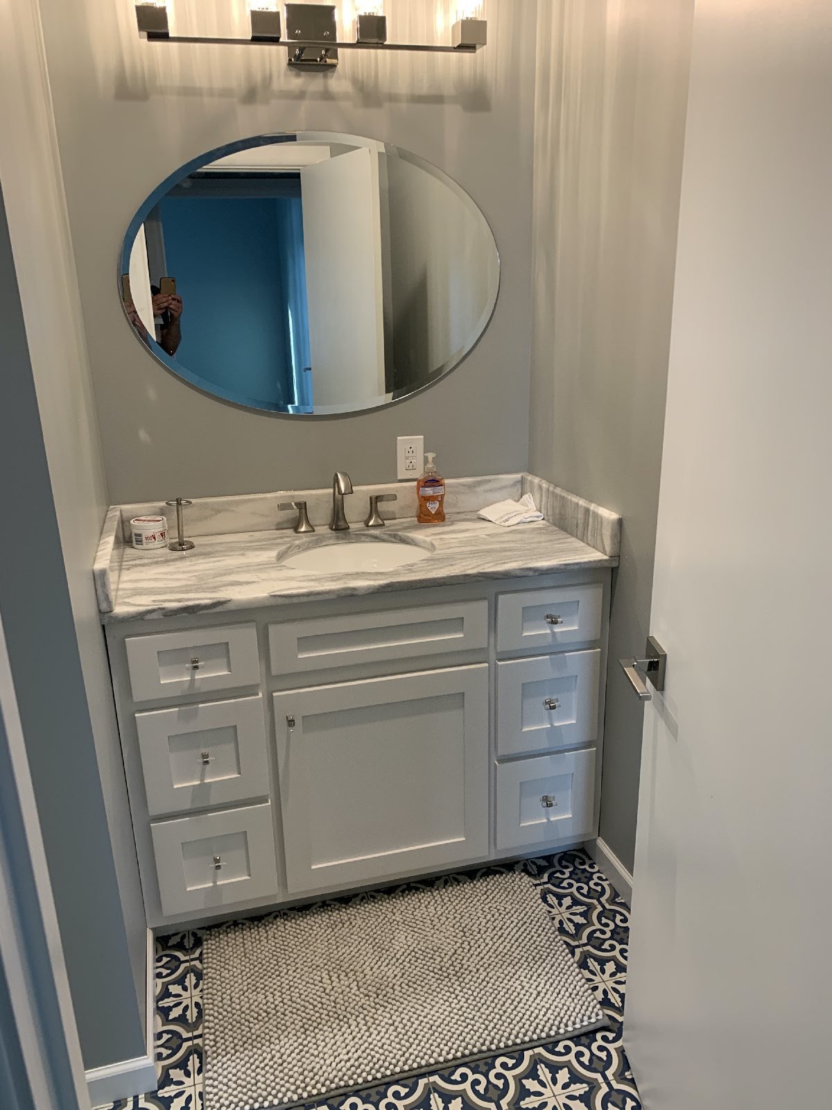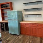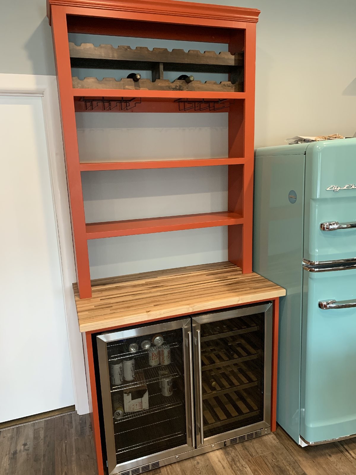 Pretty happy with the end result of this Lakehouse project. Basement level kitchenette added… tons of new cabinets, open shelving on a shiplap wall. LOVE the retro fridge/microwave they picked out too. Could NOT have done it with my “crew”… thank you Roberta Wohn & Ron Wohn. And thanks to the homeowners for allowing me to stay at this lovely home during the remodel. (Oh, and had time to finish all the trim & bath vanity doors/drawers).