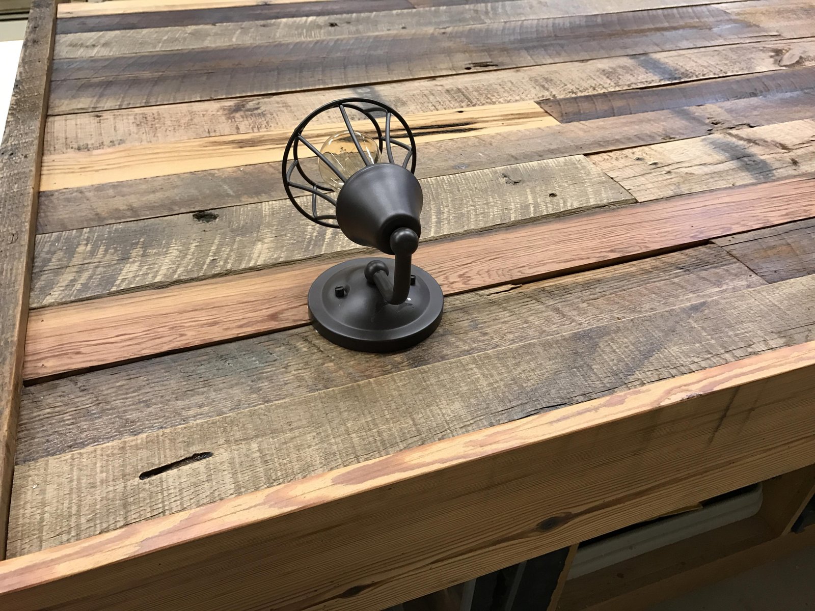 - Headboard made from reclaimed barnwood.