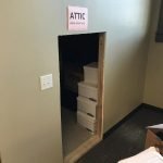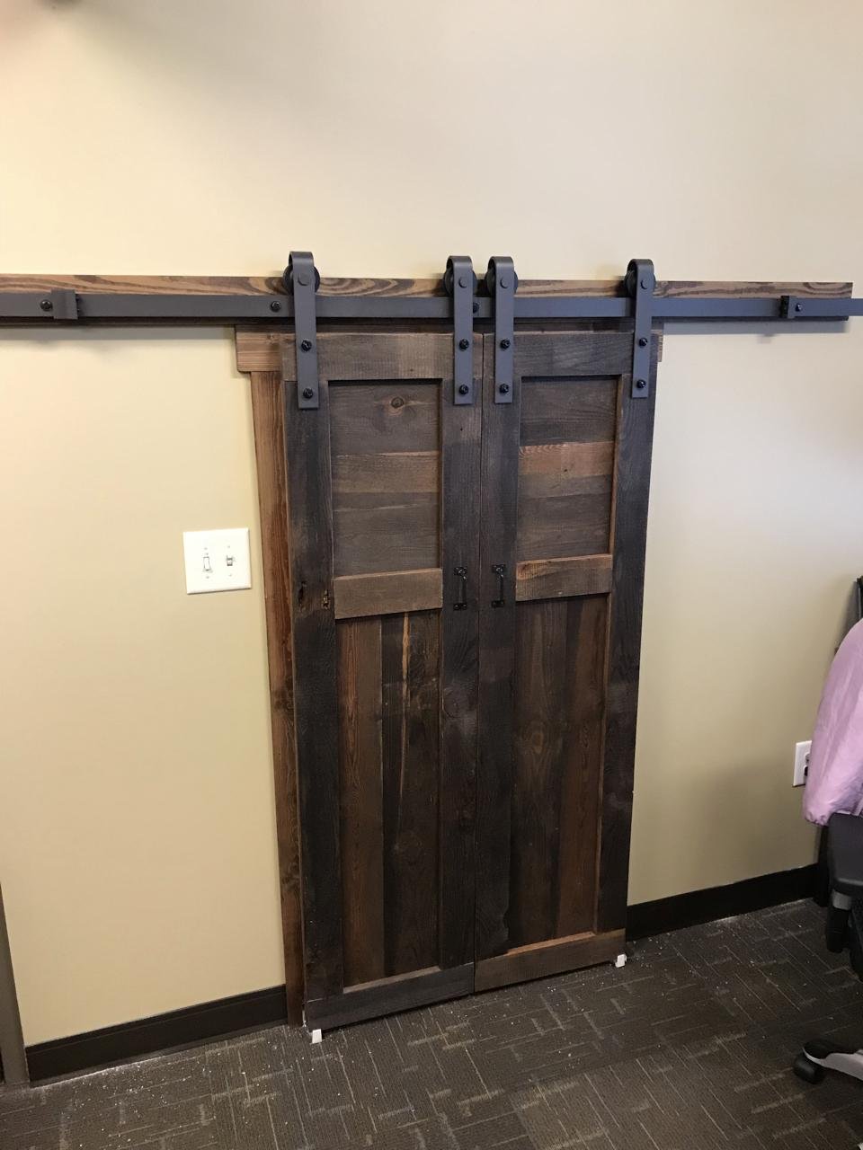Sliding Barn Door hiding an attic opening for an office. Little door, major impact! Share this: Click to share on Facebook (Opens in new window) Facebook Click to email a link to a friend (Opens in new window) Email Click to share on Pinterest (Opens in new window) Pinterest More Click to share on LinkedIn (Opens in new window) LinkedIn Click to share on X (Opens in new window) X Related